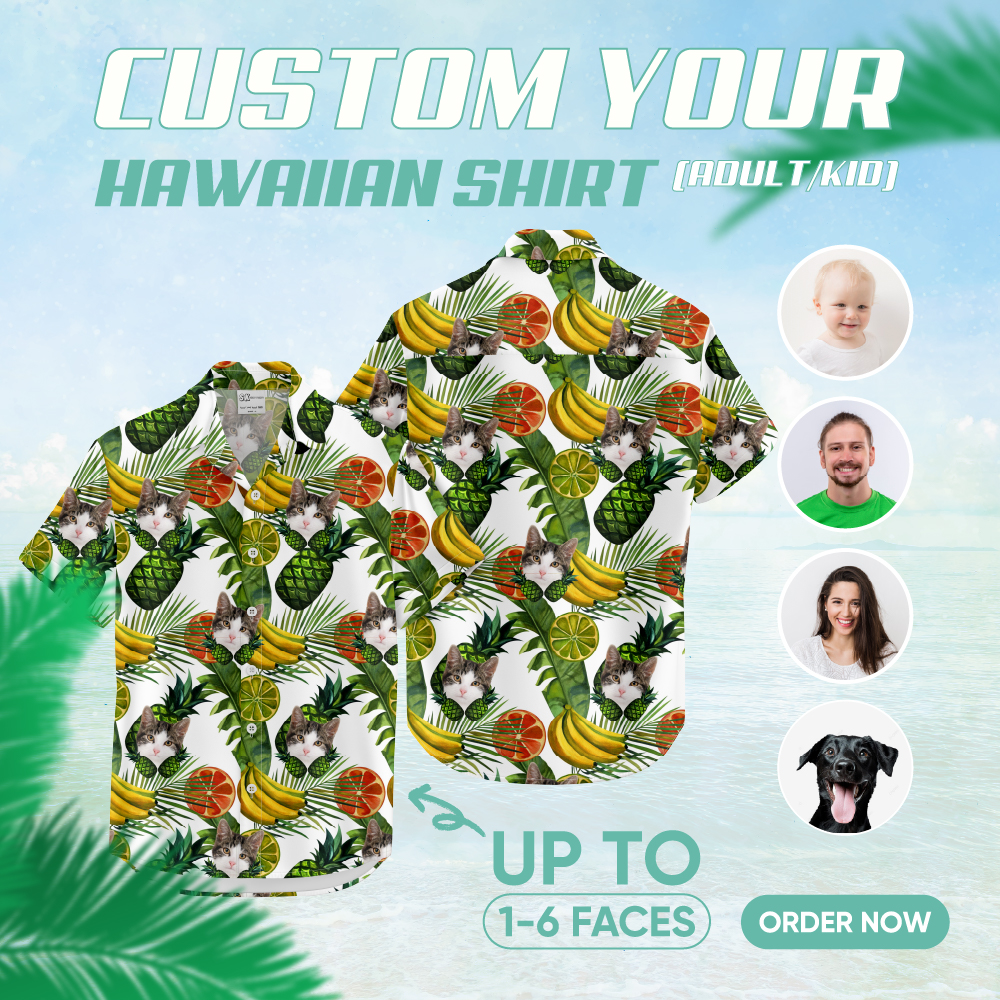 If you’re yearning for a personal spin on your cat print Hawaiian shirt, customization lets you feature your own cat’s charming face on your attire.